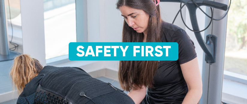 La supervisión garantiza que los niveles de intensidad sean los adecuados en todo momento. El entrenamiento con EMS exige la atención y supervisión constantes de un instructor especialmente formado, con una supervisión máxima de hasta 2 usuarios.